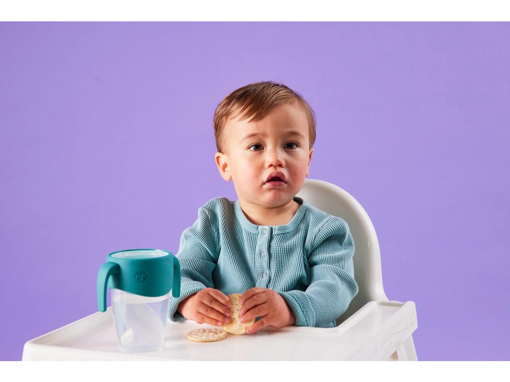 - Priehľadná základňa hrnčeka umožňuje sledovať hladinu vody a pitný režim dieťaťa