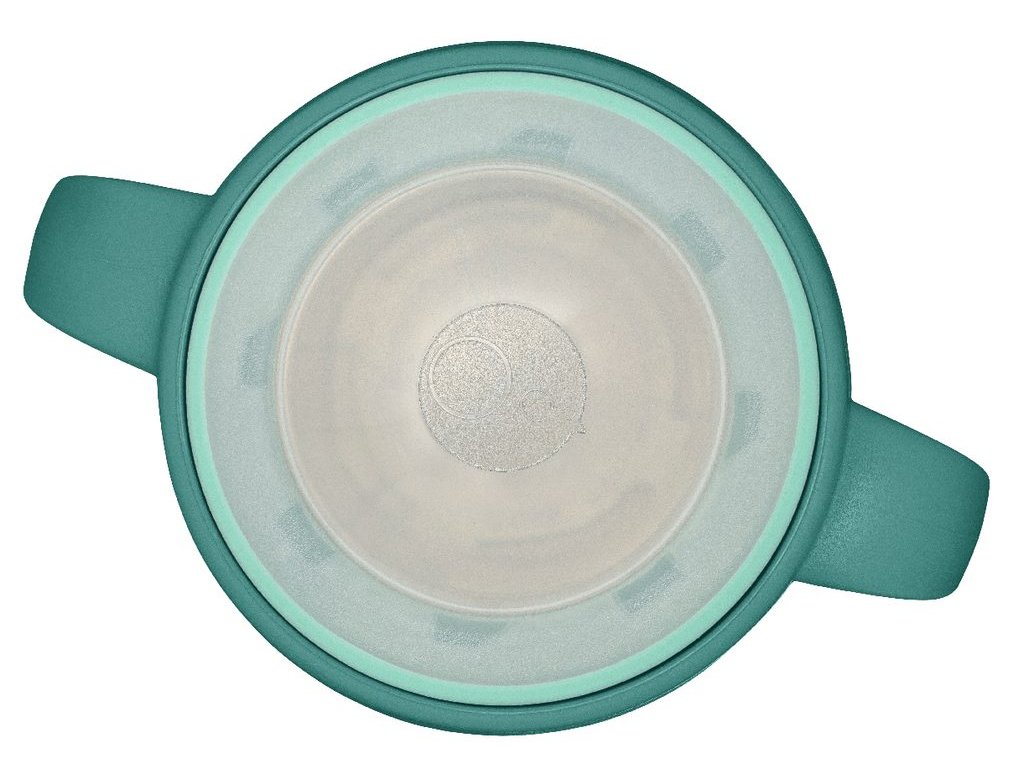 Mäkký silikónový okraj umožňuje riadenie prietoku tekutiny z hrnčeka priložením pier k hrnčeku a zabraňuje rozliatiu tekutiny. Čím pevnejšie dieťa pritlačí pery k okraju, tým viac tekutiny potečie. Silikónový okraj zároveň tesní a udržuje hrnček zatvorený, keď sa nepoužíva. Široké rukoväte sú ľahko uchopiteľné malými ručičkami a zároveň plnia funkciu uzatvárateľného "viečka"