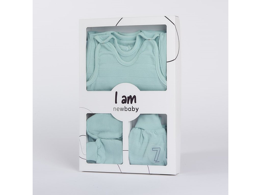 Roztomilá dojčenská 7-dielna súpravička New Baby I AM pre bábätká. Súpravička je vyrobená z veľmi príjemného, mäkkého a kvalitného materiálu, ktorý je vhodný pre bábätká a je vhodná nielen do pôrodnice. Obsahuje celorozopínacie body s dlhým rukávom, dupačky, kabátik, čiapočku, rukavičky a capáčky. Body má bočné zapínanie po celej dĺžke a medzi nožičkami na cvočky. Dupačky majú zapínanie na cvočky na ramienkach a medzi nožičkami, čo uľahčí obliekanie a prebaľovanie. Kabátik má zapínanie na cvočky po celej dĺžke. Čiapočka so širším lemom dobre drží na hlavičke bábätka a nepadá. Je veľmi praktická a netlačí na hlavičku bábätka. Rukavičky a capáčky majú širšiu sťahovaciu manžetku. Celá súpravička má nový neobyčajný dizajn s atraktívnym vzorom látky. Je navrhnutá s ohľadom na potreby bábätka a je vhodná aj ako milý darček. Súpravička je v praktickej Eko krabičke. Zloženie: 100% bavlna.Dodatočné parametre