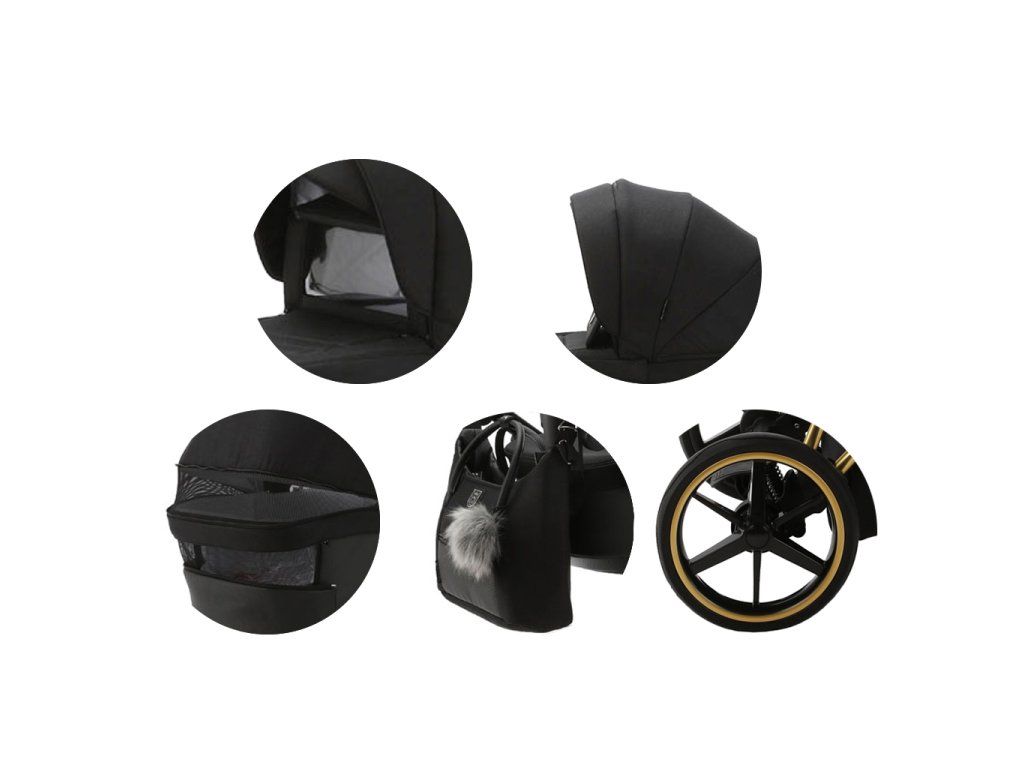 Súčasťou súpravy je aj množstvo užitočného príslušenstva, ktoré pomáha pri každodennej organizácii, ako napríklad priestranná taška + popruh na tašku, pláštenka proti dažďu, moskytiéra, rukavice a prebaľovacia podložka.