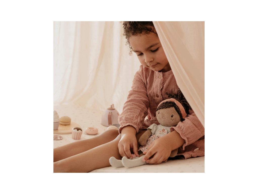 Nežná plyšová bábika Evi z mäkkého jemného materiálu je oblečená do krásnych kvetovaných šiat. Je vhodná na hranie aj maznanie a bude sa s ňou aj krásne zaspávať!