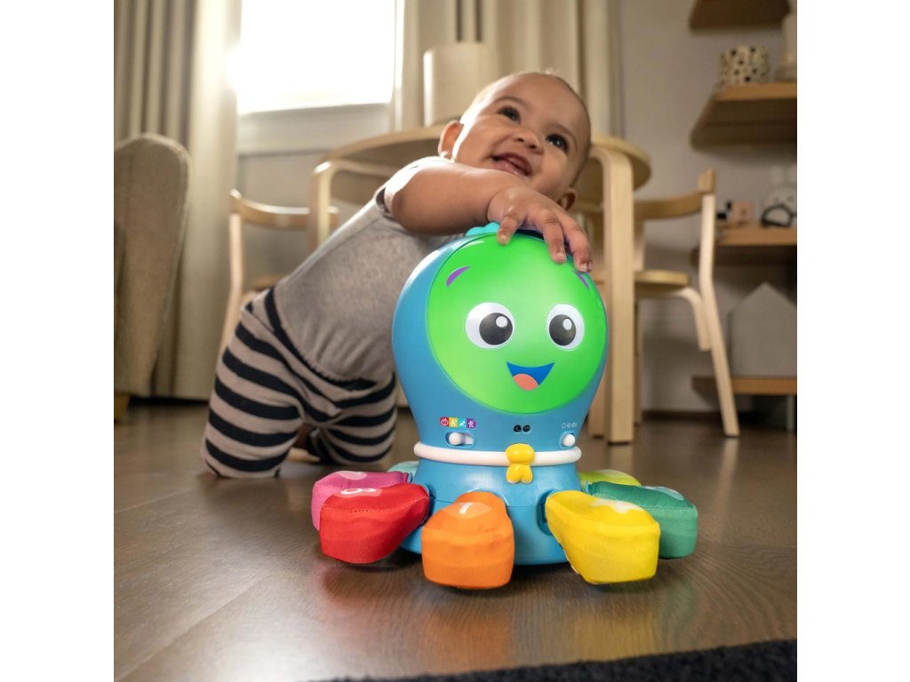Plazte sa, tancujte, naháňajte sa a učte sa s hračkou Baby Einstein Ocean Explorers Go Opus Go 4 v 1 na preliezanie a naháňanie. Táto pohybom aktivovaná hračka rastie s dieťatkom od bábätka so 4 režimami učenia a zábavy, ktoré inšpirujú k hudobnému skúmaniu, učeniu čísel a tvarov, zmyslovému objavovaniu a pohybu.Opus ožíva a hrá 4 piesne z novej série Baby Einstein Ocean Explorers – „Chobotnica Hide & Seek“, „Feeling Curious“, „Still Learning“ a „Medúza Wiggle“. Dotknite sa mäkkého ramena v režime Tummy Time a uvidíte, ako sa Opus rozsvieti, roztočí a zaspieva. V režime Sit & Play sa dieťatko môže učiť čísla, farby a tvary, keď sa Opus točí. V režime prenasledovania sa Opus vzďaľuje aby dieťatko snímalo prekážky, povzbudzuje plazenie alebo chôdzu. Po chytení odmení oslavnou piesňou. Dance Mode prináša párty pre všetky vekové kategórie, pretože Opus učí protiklady a hrá hudbu. Hovoriaca anglicky.