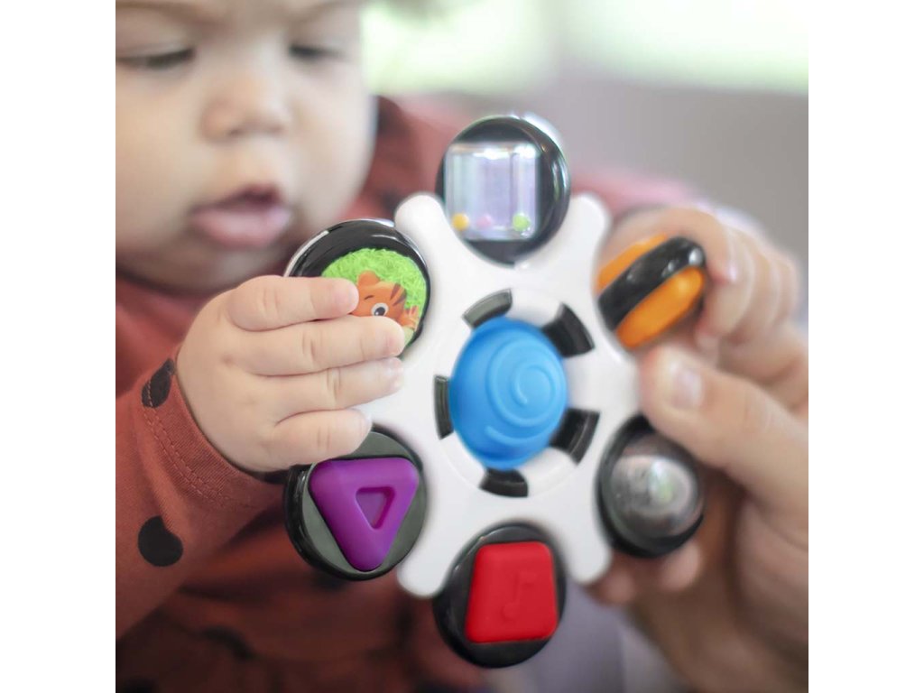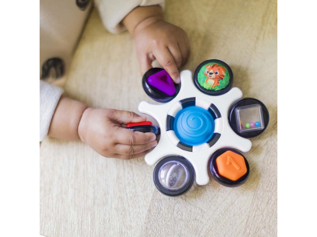 So senzorickou hračkou od Baby Einstein™ určite upútate pozornosť Vášho bábätka. Dieťatko zostane zaneprázdnené a zaujaté, keď bude objavovať rôzne aktivity, ktoré hračka ponúka. Curiosity Clutch pomáha rodičom oboznámiť svoje bábätká a batoľatá s rôznymi tvarmi, zvukmi, farbami a textúrami už v ranom veku, čím tiež pomáha budovať ich chápanie príčiny a následku. Táto zmyslová hračka predstaví aj tigríka Tinkera, obľúbenú postavičku z kníh a videí Baby Einstein. Je vyrobená z materiálov bez obsahu BPA a ľahko sa udržuje v čistote. Vhodné pre deti od 3 mesiacov.Vlastnosti: