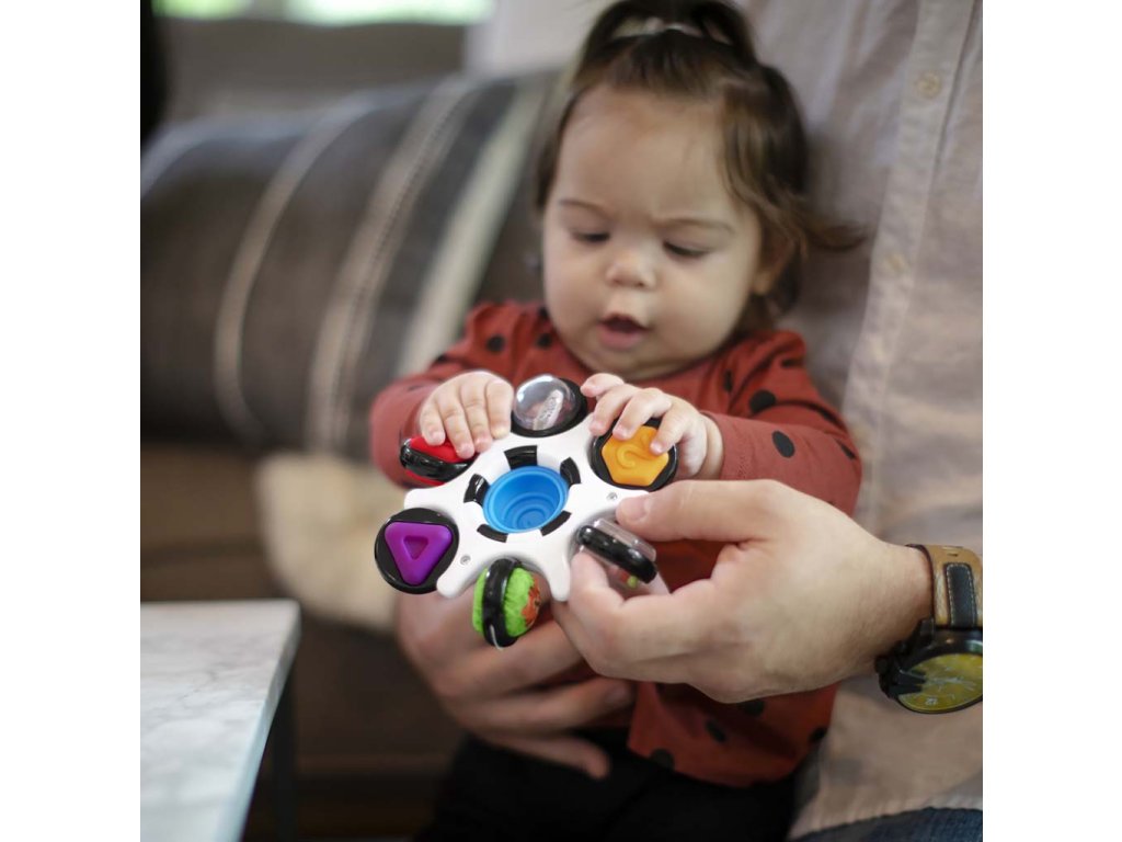 - Výhody pre rozvoj - podporuje jemnú motoriku a buduje chápanie príčiny a následku prostredníctvom aktívnej hry s dvoma rukami.