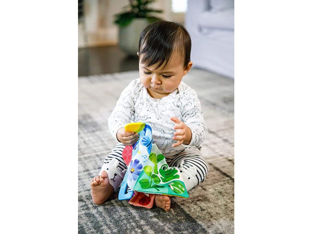 Doprajte dieťatku skutočnú chuť dobrodružstva s detskou textilnou knižkou Curious Explorers. Knižka sleduje postavičky Baby Einstein na ich dobrodružných výletoch pomocou farbených obrázkov a vzorov.Vďaka mäkkej textúre a tvaru sa dieťatku ľahko drží aj v malých rúčkach. Vrúbkované textúry na rohoch knižky sú navrhnuté tak, aby masírovali boľavé ďasná počas prerezávania prvých zúbkov. Vďaka ľahko uchopiteľnej rukoväti si vaše dieťa môže vziať túto farebnú knižku všade so sebou.