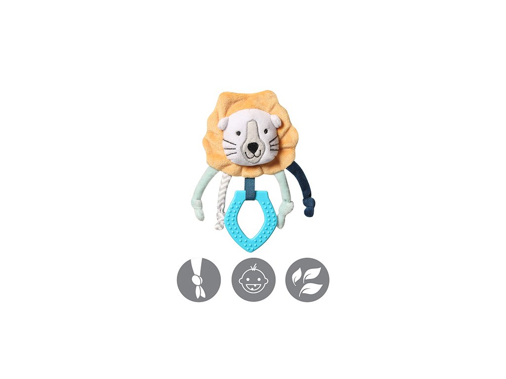 - Prvky súpravy: vláčik s dvomi vagónmi, šuštiaca hryzačka v tvare leva, pískacia hračka v tvare žirafy, hrkálka v tvare slona