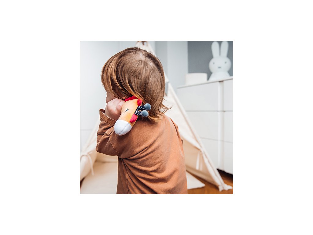 - farebné uzlíky stimulujú detský hmat a šuštiace prvky detský sluch