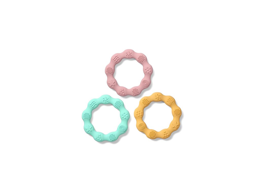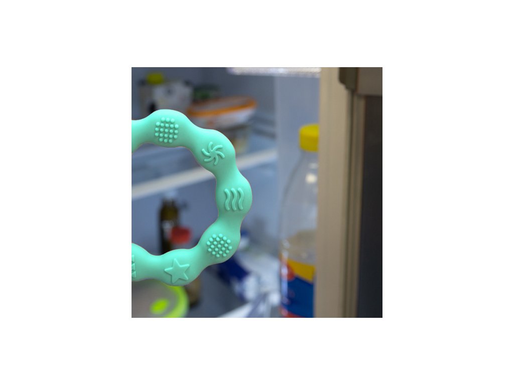 Silikónová hryzačka v tvare kruhu je nenahraditeľnou pomôckou pri prerezávaní prvých zúbkov.Dá sa schladiť v chladničke alebo možno na ňu aplikovať špeciálny gél. Tým pomáha uľaviť pri bolestiach ďasien spôsobených rastom zubov.