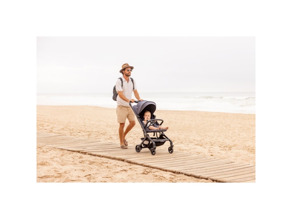 Rozťahovateľná strieška poskytuje ochranu pred slnkom UPF 50+ a obsahuje vetrací panel. Praktické zadné úložné vrecko a veľký košík s kapacitou 3 kg ponúkajú dostatok priestoru na všetko potrebné na cestách.