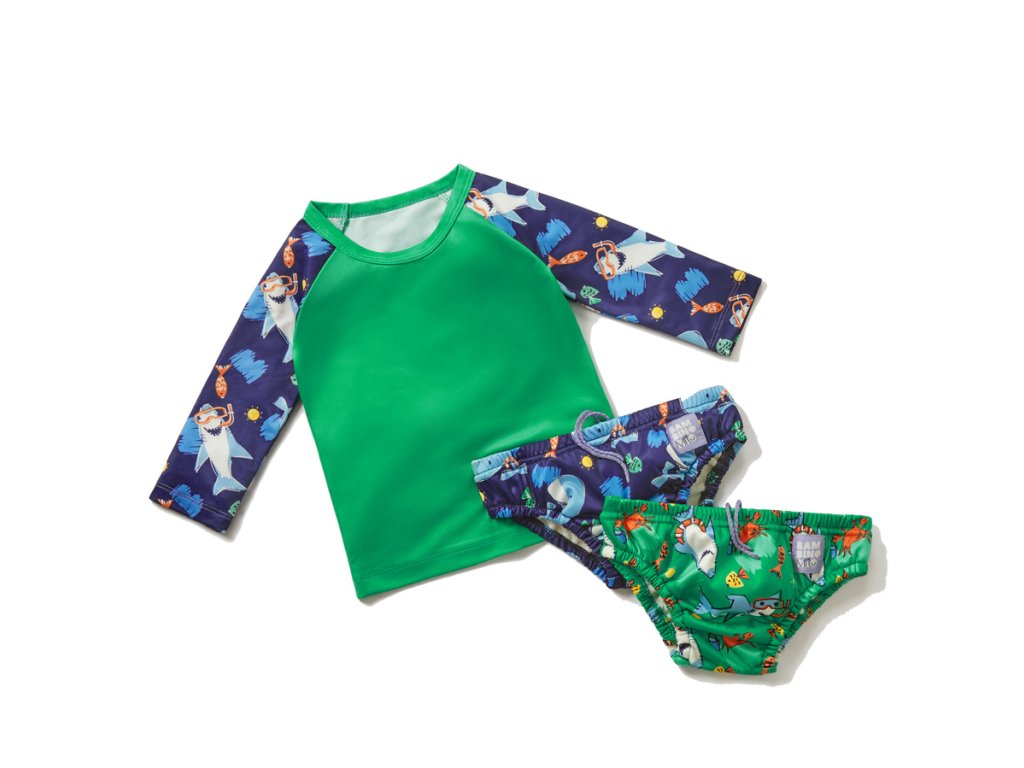 Sada pozostáva z opakovane použiteľných dojčenských plaviek Squeak a Finn a detského trička do vody Ocean Explorers.