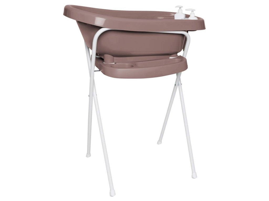 Stojan má výšku 98 cm, otvor na zavesenie uteráka a vytvorené miesto na mydlo. Je skladacia a je vybavený inovatívnym Click systémom. Len 2 kliknutia a vanička je ľahko a bezpečne umiestnená na kúpací stojan. Rovnako ľahko môže byť pomocou kliknutia vanička zo stojana odpojená. Tiež kúpací kýblik Bébé-Bubble je možné na tento stojan umiestniť, takže vám stačí kúpiť len 1 stojan a naň umiestniť najprv Bébé-Bubble a potom vaničku.