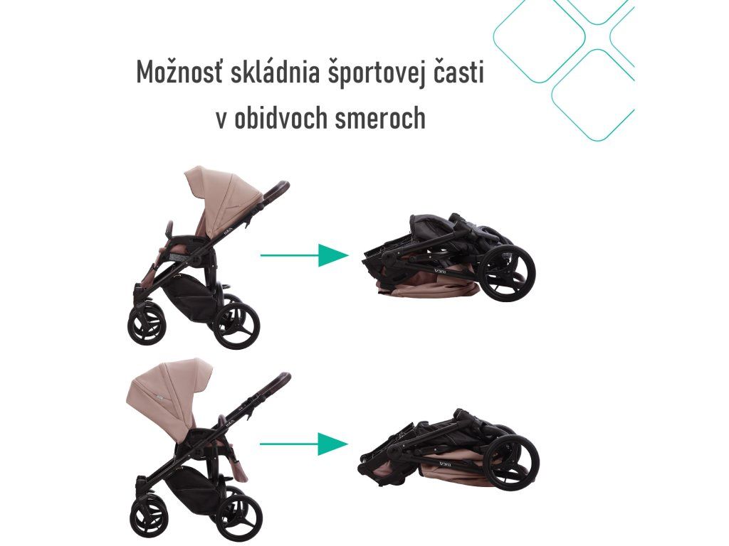 - vďaka veľmi dobrému regulovateľnému odpruženie celého kočíka, je možné použitie aj na nespevnených cestách a terénnych nerovnostiach