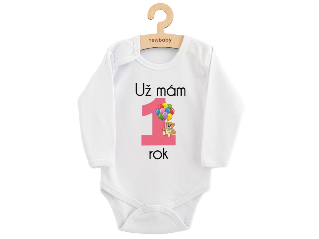 Body s potlačou New Baby Už mám 1 rok ružové, veľkosť 86 (12-18m)