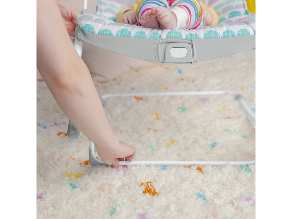 Život s vaším dieťatkom je s húpatkom Rosy Rainbow 2 v 1 od Bright Starts ružový, ako sa len dá. Toto sladké viacúčelové húpatko rastie spolu s dieťaťom a je skvelé pre dojčatá aj batoľatá! Dospelí môžu bábätko upokojiť v režime hojdania, zatiaľ čo hrazdička s hračkami zabaví zhora pomocou hrkálky v tvare srdiečka a hračky na naháňanie korálikov s kvetinkami. Vibrujúce sedadlo pomáha udržať dieťa v pokoji, zatiaľ čo vy máte voľné ruky s dieťaťom na očiach.Funkcia vibrovania jedným tlačidlom je zabudovaná v sedadle, takže vibrácie môžete jednoducho zapnúť alebo vypnúť podľa preferencií dieťaťa. Ak chcete sedadlo nakloniť, použite tlačidlá pod hrazdičkou s hračkami na každej strane sedadla, ktoré sa dajú nastaviť dopredu a dozadu. Pomocou predného nárazníka môžete plynule prepínať z hojdacieho na stacionárne sedadlo. Keď ste na cestách, jednoducho ho uchopte na každej strane a zdvihnite, keď dieťa nie je v hojdačke, aby ste sa mohli presunúť z miestnosti do miestnosti.