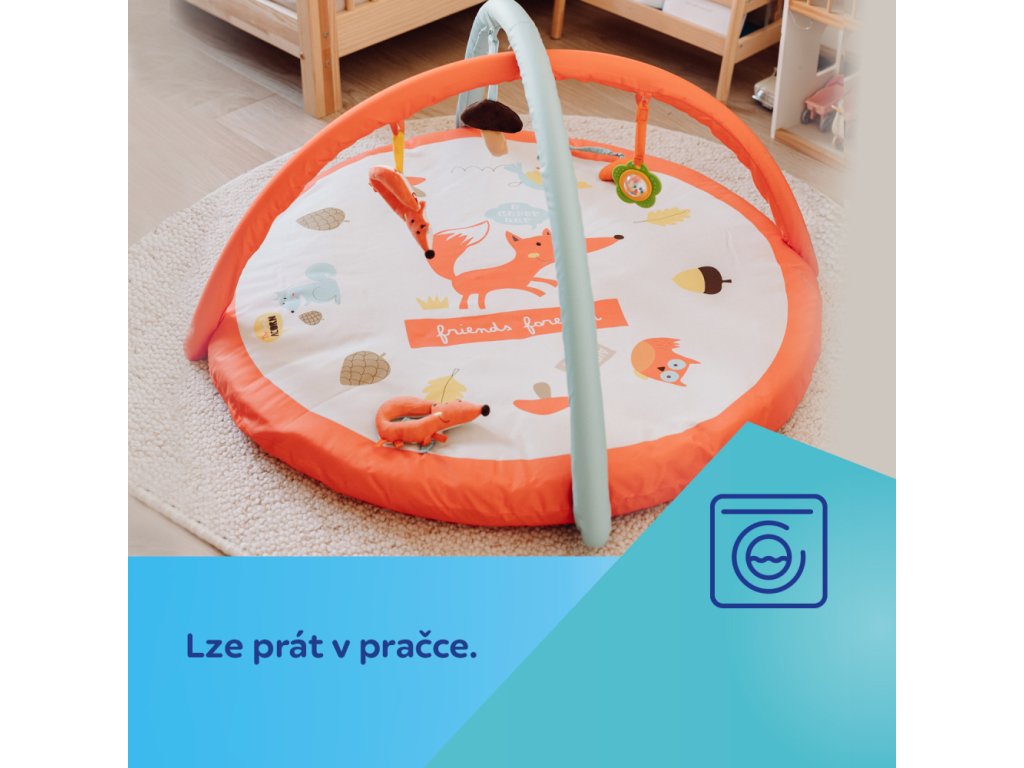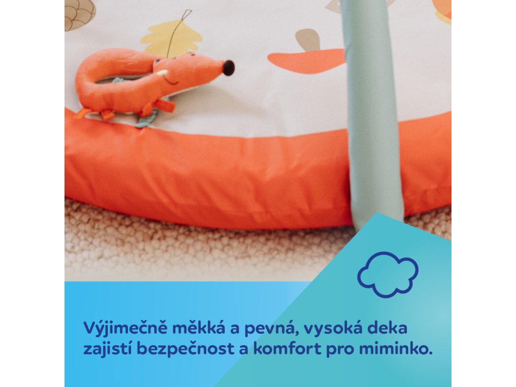 Hračky pripevnené k hrazdičke a deke povzbudzujú dieťa k aktivite. Zrkadlo vzbudzuje zvedavosť a predlžuje dobu strávenú v ľahu na brušku. Vzdelávacia deka pre bábätká je vyrobená z na dotyk príjemných a bezpečných materiálov. Motív lesných zvieratiek navyše vaše deti určite pozitívne naladia. Interaktívnu deku FOX pre deti je možné prať v práčke.