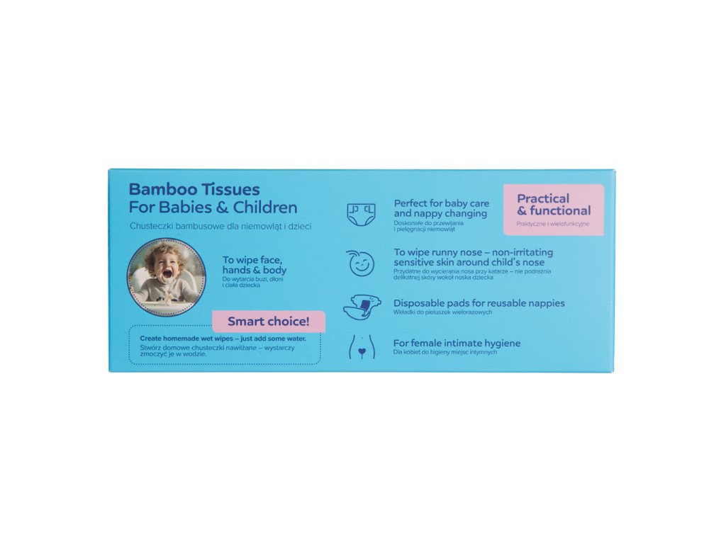 Bambusové obrúsky pre bábätká a deti sú veľmi praktické a multifunkčné - perfektné na každodenné použitie a určite budú nenahraditeľné pri cestovaní a prechádzkach. Obrúsky sú skvelou alternatívou k hygienickým vlhčeným obrúskom pre deti. Sú užitočné pri starostlivosti a prebaľovaní detí. Veľmi odolná a jemná bambusová netkaná textília dokonale absorbuje vlhkosť, takže obrúsky sú perfektné ako vložky do plienok na opakované použitie - uľahčujú čistenie plienky od pevného odpadu. Bambusové obrúsky o rozmere 18x18 cm sú tiež skvelé na utieranie tvárí, ručičiek a tela bábätiek alebo na utieranie nosa pri nádche bez toho, aby dráždili jemnú pokožku okolo nosa. Mamičky ich môžu použiť aj na odličovanie, osušenie tváre pri každodennej starostlivosti alebo aj na čistenie intímnych partií.