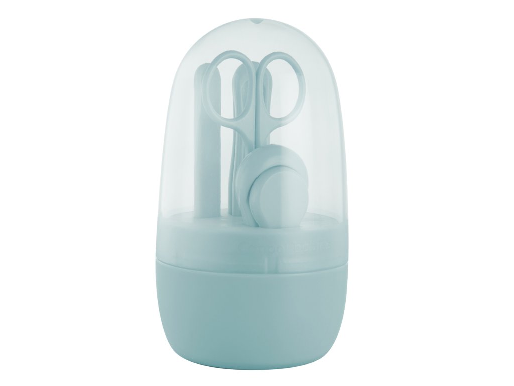Kompletná sada na nechty pre bábätká zabalená v praktickom vodeodolnom púzdre, ktoré umožňuje hygienické skladovanie a prenášanie.Súprava na nechty pre bábätká sa skladá zo 4 prvkov – nožníc, šikovných klieští na nechty, jemného pilníka a pinzety.
