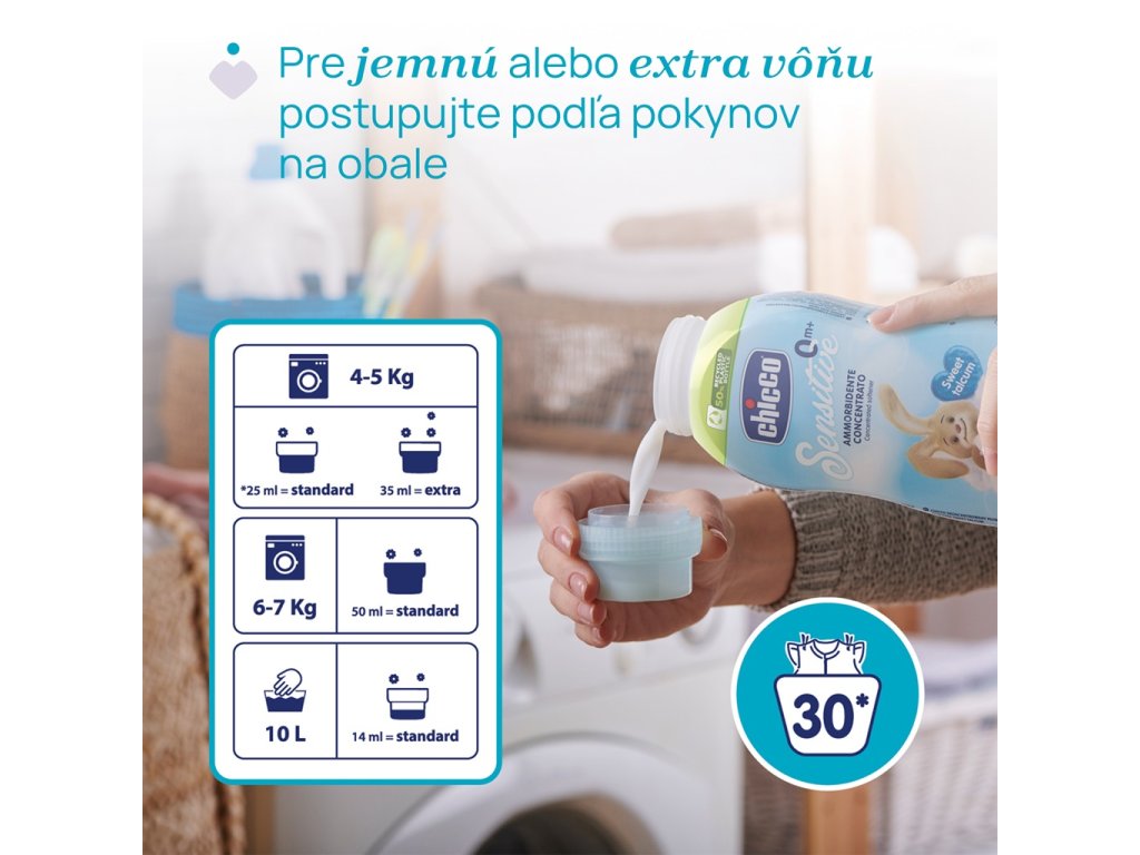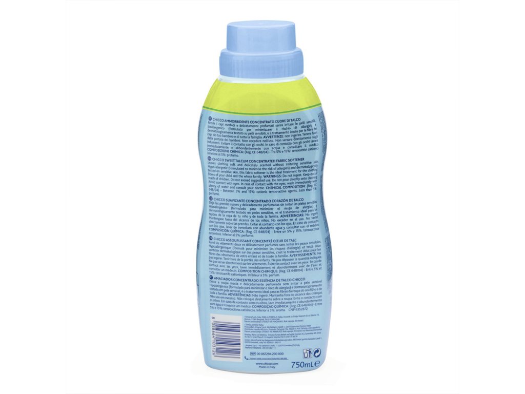 Chicco aviváž osviežuje a zjemňuje všetky detské vecičky bábätka bez podráždenia jeho citlivej pokožky.Hypoalergénne, neobsahuje farbivá a je dermatologicky testované na citlivej pokožke. Koncentrované zloženie s „zápach odstraňujúcou“ technológiou, ktorá zanecháva oblečenie čisté a jemne navoňané.