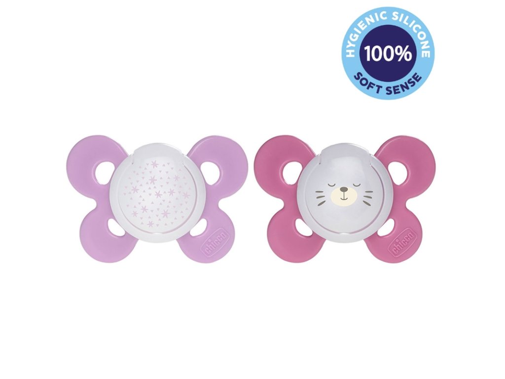CHICCO Cumlík Physio Comfort silikón nočný 16-36m dievča - hviezdy/macko 2 ks