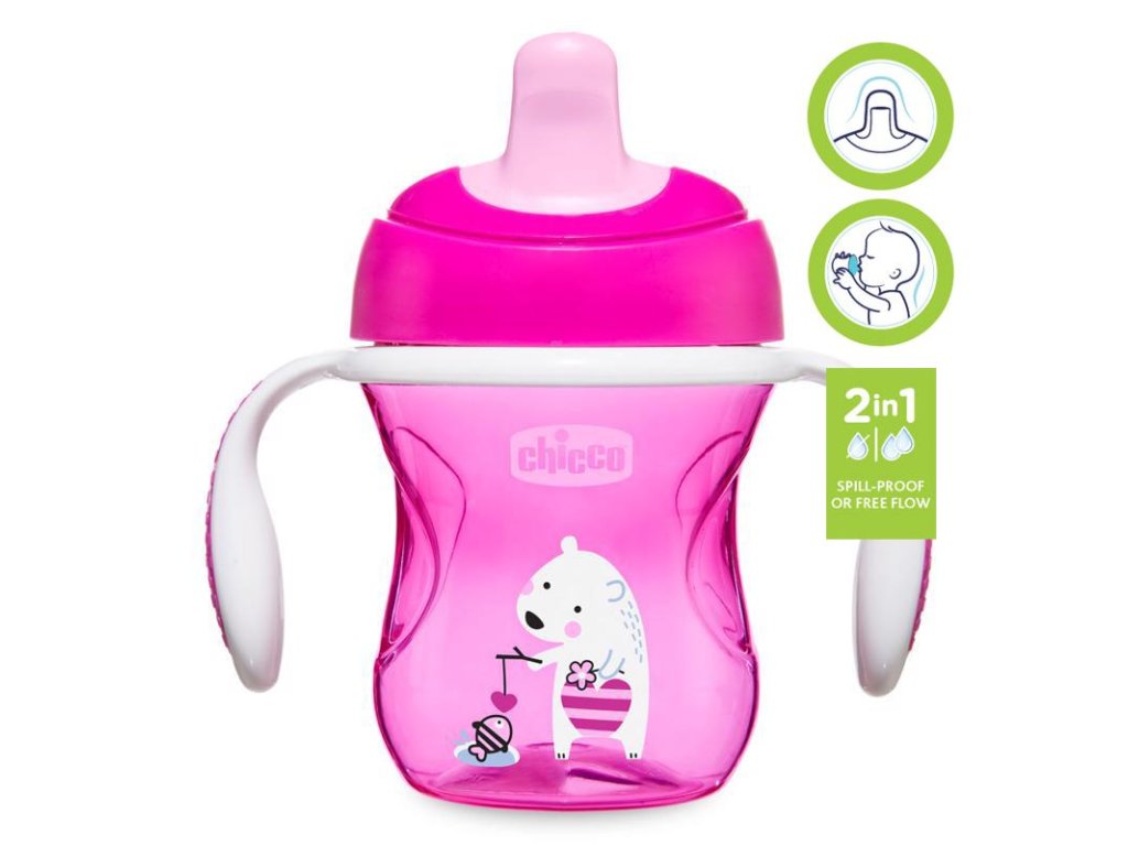 CHICCO Hrnček Training s držadlami 200 ml ružový 6m+