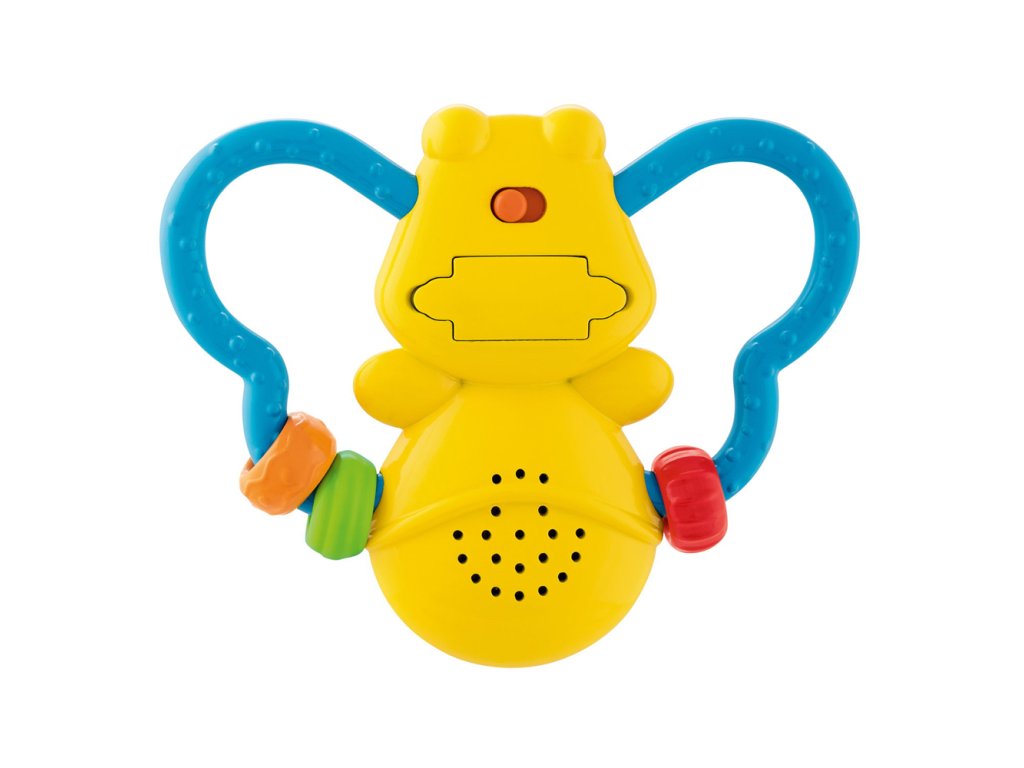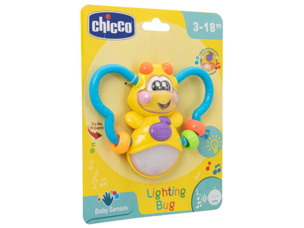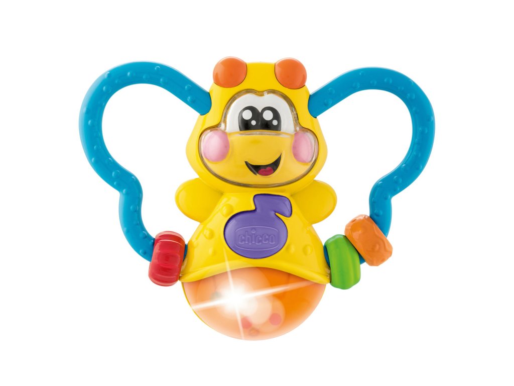 Elektronický hrkálka so zvukmi, melódiami a svetlo, ktoré vyzerá ako skutočná svetluška.Melódie stimulujú sluch a pobavia deti zábavnými zvukmi.