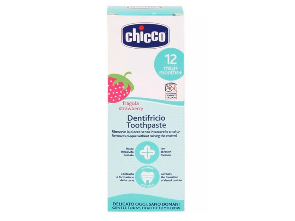 Rad výrobkov dentálnej starostlivosti od značky Chicco je extra jemný, rešpektuje citlivé detské ďasná a zubnú sklovinu tých najmenších.Zubná pasta vyvinutá špeciálne pre deti je bez konzervačných látok. Obsahuje bio-vápnik, čo je biologicky dostupný vápnik, ktorý je minerálom a posilňuje zúbky v konečnej fáze ich rastu.