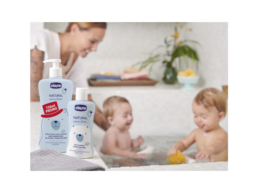 Rad kozmetiky Chicco Natural Sensation je inšpirovaný autentickou láskou k dieťatku a k jeho citlivej pokožke rešpektujúc pritom prirodzené pH. Kozmetika je schválená a testovaná pediatrami a dermatológmi pre deti už od narodenia.Šampón na vlasy a telo 2v1 Chicco Natural Sensation je ideálny na umývanie dieťatka, a to už v jednom kroku. Umýva detskú pokožku s maximálnou jemnosťou a zanecháva ju jemnú a voňavú. Zanecháva vlásky jemné, voňavé a ľahko sa rozčesávajú. Jednoducho sa oplachuje.