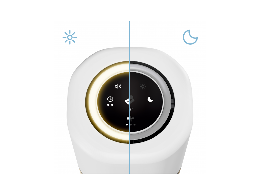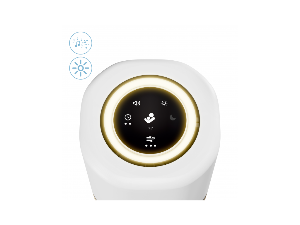 - 3 funkcie v jednom zariadení: čistička vzduchu + nočné svetlo + upokojujúce zvuky