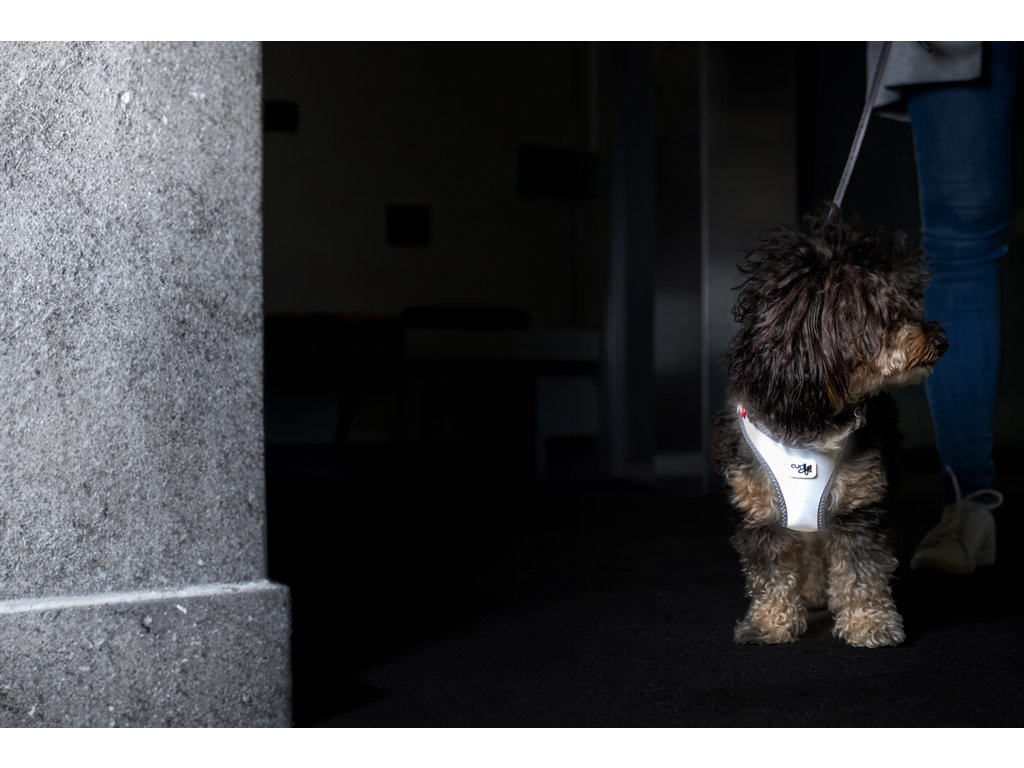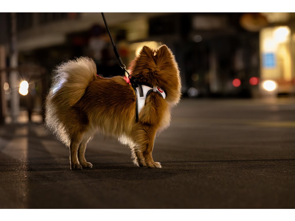 Pre bezpečnosť v tme.Ľahký, pohodlný postroj pre malých a stredne veľkých psov. Vodítko a postroj sa dajú pripnúť jednou rukou pomocou spony. Táto spona eliminuje „cvakavý“ zvuk D-krúžkov. Výrazne zlepšená ergonómia postroju a optimalizované nosenie vďaka novému vzoru a novej veľkostnej stupnici. Možnosť nastavenia veľkosti postroja pomocou suchého zipsu. Postroj je vyrobený tak, aby došlo k optimálnemu rozloženiu napätia a aby nedochádzalo k poraneniu krku. Polstrovaná pracka zabezpečuje, aby sa srsť nezachytávala ani nedráždila.