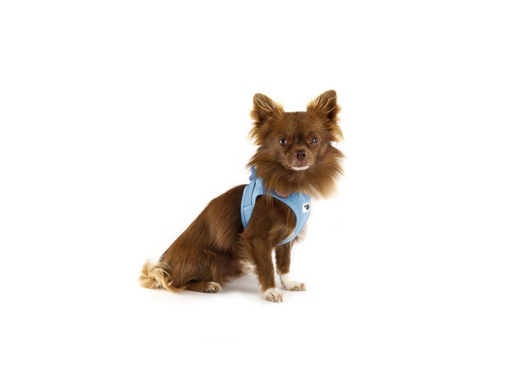 Ľahký, pohodlný postroj pre malých a stredne veľkých psov. Vodítko a postroj sa dajú pripnúť jednou rukou pomocou spony. Vysokopevný materiál spony, ktorý vydrží ťahové zaťaženie až do 100 kg. Táto spona eliminuje „cvakavý“ zvuk D-krúžkov. Výrazne zlepšená ergonómia postroju a optimalizované nosenie vďaka novému vzoru a novej veľkostnej stupnici.Postroj je vyrobený z ľahkého vzdušného materiálu Air-Mesh pre pohodlné nosenie. Možnosť nastavenia veľkosti postroja pomocou suchého zipsu. Postroj je vyrobený tak, aby došlo k optimálnemu rozloženiu napätia a aby nedochádzalo k poraneniu krku. Polstrovaná pracka zabezpečuje, aby sa srsť nezachytávala ani nedráždila.