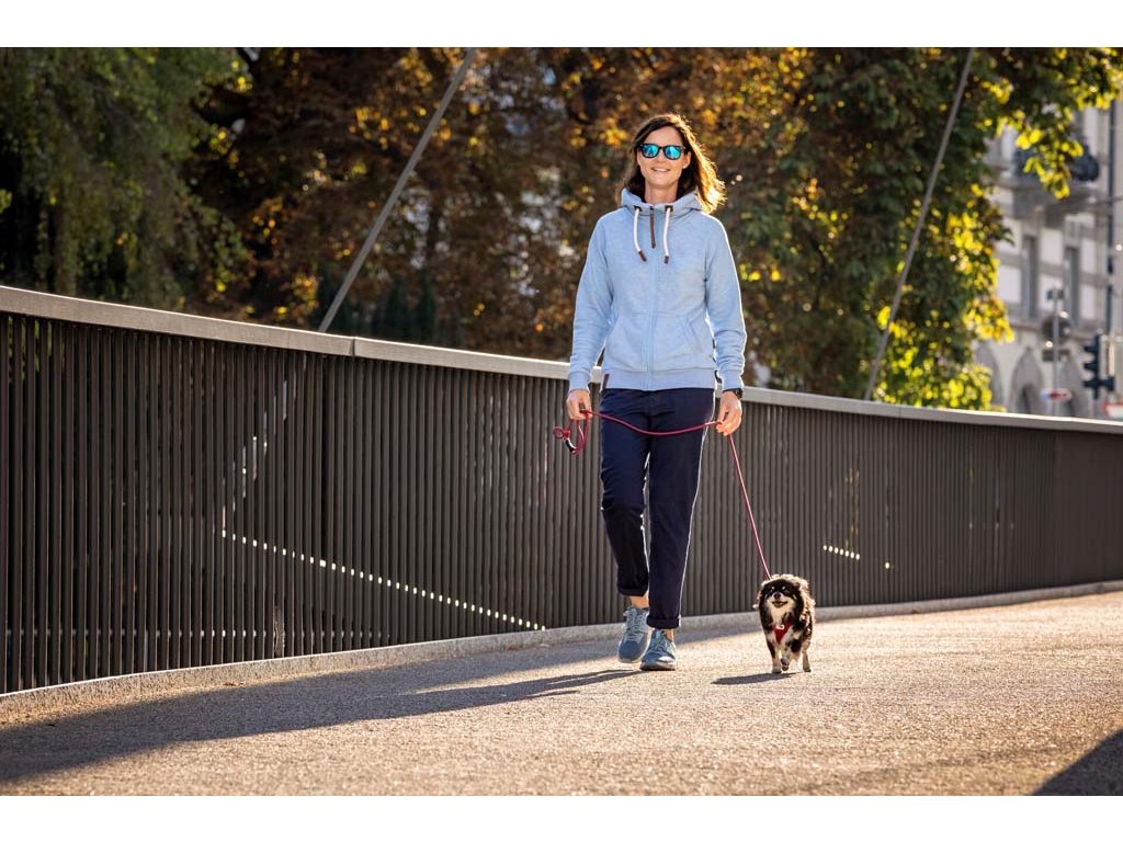 Ľahký, pohodlný postroj pre malých a stredne veľkých psov. Vodítko a postroj sa dajú pripnúť jednou rukou pomocou spony. Vysokopevný materiál spony, ktorý vydrží ťahové zaťaženie až do 100 kg. Táto spona eliminuje „cvakavý“ zvuk D-krúžkov. Výrazne zlepšená ergonómia postroju a optimalizované nosenie vďaka novému vzoru a novej veľkostnej stupnici.Postroj je vyrobený z ľahkého vzdušného materiálu Air-Mesh pre pohodlné nosenie. Možnosť nastavenia veľkosti postroja pomocou suchého zipsu. Postroj je vyrobený tak, aby došlo k optimálnemu rozloženiu napätia a aby nedochádzalo k poraneniu krku. Polstrovaná pracka zabezpečuje, aby sa srsť nezachytávala ani nedráždila.