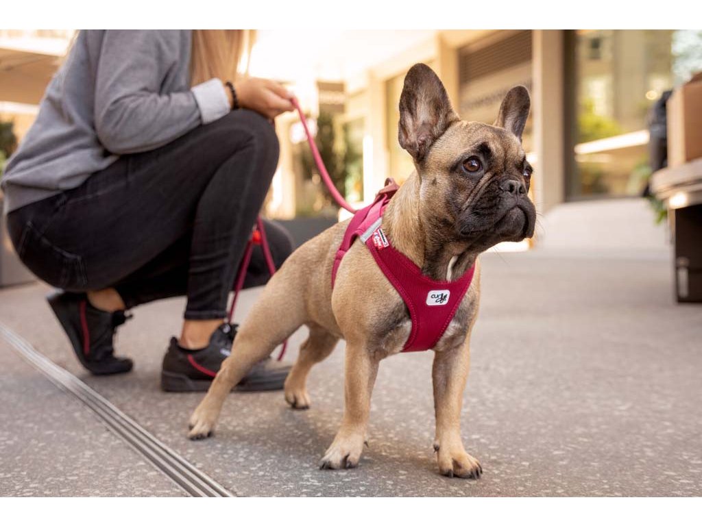 Ľahký, pohodlný postroj pre malých a stredne veľkých psov. Vodítko a postroj sa dajú pripnúť jednou rukou pomocou spony. Vysokopevný materiál spony, ktorý vydrží ťahové zaťaženie až do 100 kg. Táto spona eliminuje „cvakavý“ zvuk D-krúžkov. Výrazne zlepšená ergonómia postroju a optimalizované nosenie vďaka novému vzoru a novej veľkostnej stupnici.Postroj je vyrobený z ľahkého vzdušného materiálu Air-Mesh pre pohodlné nosenie. Možnosť nastavenia veľkosti postroja pomocou suchého zipsu. Postroj je vyrobený tak, aby došlo k optimálnemu rozloženiu napätia a aby nedochádzalo k poraneniu krku. Polstrovaná pracka zabezpečuje, aby sa srsť nezachytávala ani nedráždila.