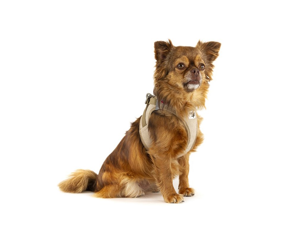 Elegantný, pohodlný postroj pre menších psov s novou praktickou sponou a odolným manšestrovým vonkajším materiál. Vrchná časť je podšitá ľahkou priedušnou sieťovinou Air-Mesh. Nastaviteľná veľkosť pomocou suchého zipsu, aby sa tak postroj dokonale prispôsobil telu psa. Prekrížené nylonové popruhy zabezpečujú optimálne rozloženie napätia a chránia pred poranením krku. Polstrovaná pracka zabezpečuje, aby sa srsť nezachytávala ani nedráždila.Postroj a vodítko je teraz možné pripnúť jednou rukou pomocou spony. Vysoko pevný materiál spony vydrží ťahové zaťaženie až 100 kg. Táto spona eliminuje „cvakavý“ zvuk klasický D krúžkov a zároveň znižuje hmotnosť postroja.