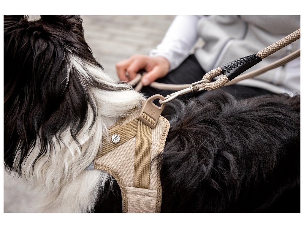 - Postroj vylepšený o praktickú sponu, vďaka ktorej sa vodítko a postroj dajú pripnúť jednou rukou