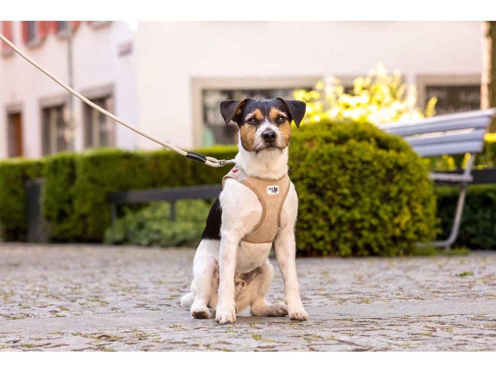 Elegantný, pohodlný postroj pre menších psov s novou praktickou sponou a odolným manšestrovým vonkajším materiál. Vrchná časť je podšitá ľahkou priedušnou sieťovinou Air-Mesh. Nastaviteľná veľkosť pomocou suchého zipsu, aby sa tak postroj dokonale prispôsobil telu psa. Prekrížené nylonové popruhy zabezpečujú optimálne rozloženie napätia a chránia pred poranením krku. Polstrovaná pracka zabezpečuje, aby sa srsť nezachytávala ani nedráždila.Postroj a vodítko je teraz možné pripnúť jednou rukou pomocou spony. Vysoko pevný materiál spony vydrží ťahové zaťaženie až 100 kg. Táto spona eliminuje „cvakavý“ zvuk klasický D krúžkov a zároveň znižuje hmotnosť postroja.