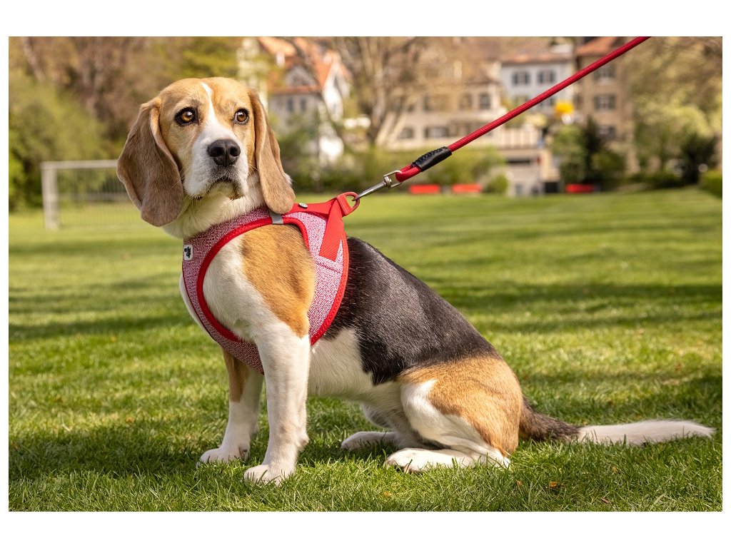 - Postroj vylepšený o praktickú sponu, vďaka ktorej sa vodítko a postroj dajú pripnúť jednou rukou