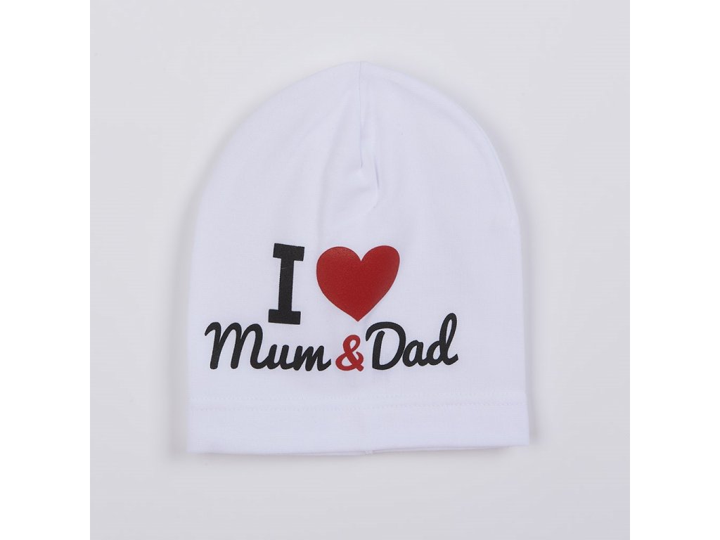 Detská čiapočka New Baby I Love Mum and Dad biela, veľkosť 9-18 m