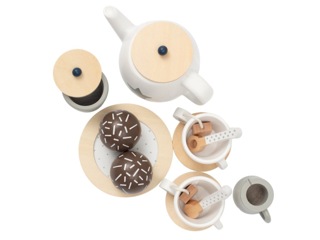 Vďaka drevenému spracovaniu s dôrazom na detail a bezpečným materiálom je tento čajový set ideálny na hru „na dospelých“, piknik v detskej izbe alebo servírovanie čaju plyšákom a bábikám. Podporuje predstavivosť, rozvíja sociálne zručnosti a prirodzene zapája deti do kreatívnej hry.