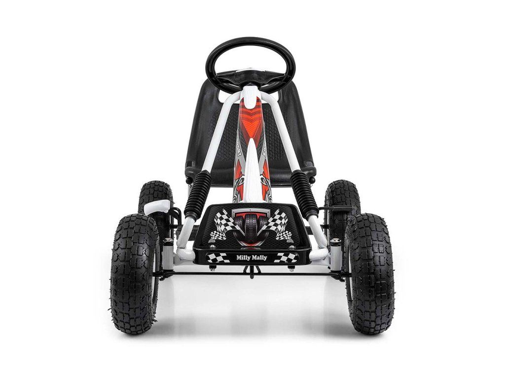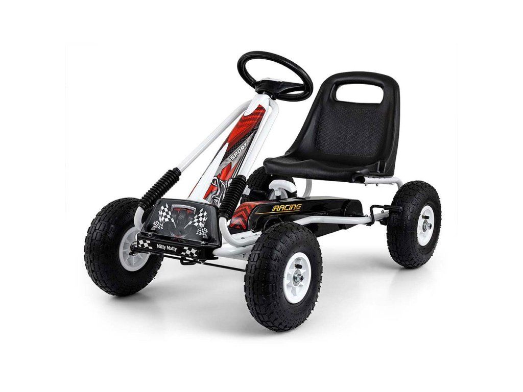 Veľká športová šliapacia motokára Thor bola navrhnutá pre najmladších vodičov a fanúšikov rýchlej jazdy. Konštrukcia z ľahkého kovu s plastovými krytmi v športovom štýle dodá každému malému vodičovi šmrnc. Pohodlie zaisťuje športovo tvarované sedadlo s nastaviteľnou vzdialenosťou od volantu. Športový volant uľahčuje riadenie vozidla a veľké nafukovacie pneumatiky zaistia komfort a pohodlie pri jazde na akomkoľvek povrchu. Motokára má zabudovaný reťazový pohon s možnosťou odpojenia pohonu - funkcia "voľnobežky" - a ručnú brzdu na zadnej náprave. Šlapadlo sa vyznačuje športovým dizajnom a vysokou kvalitou spracovania.
