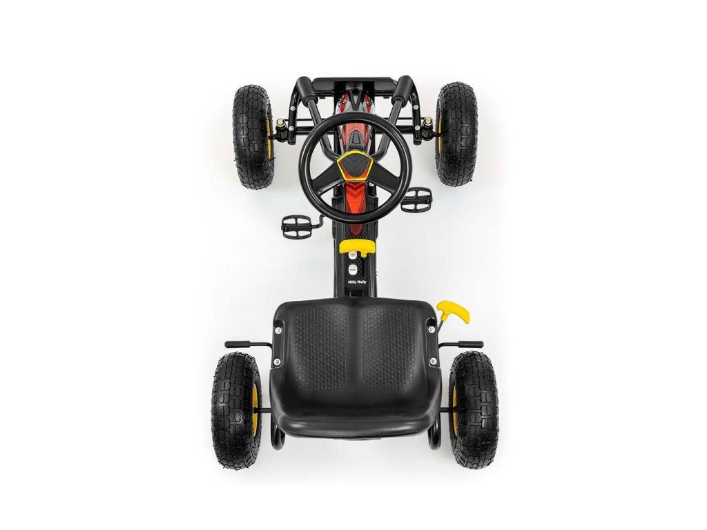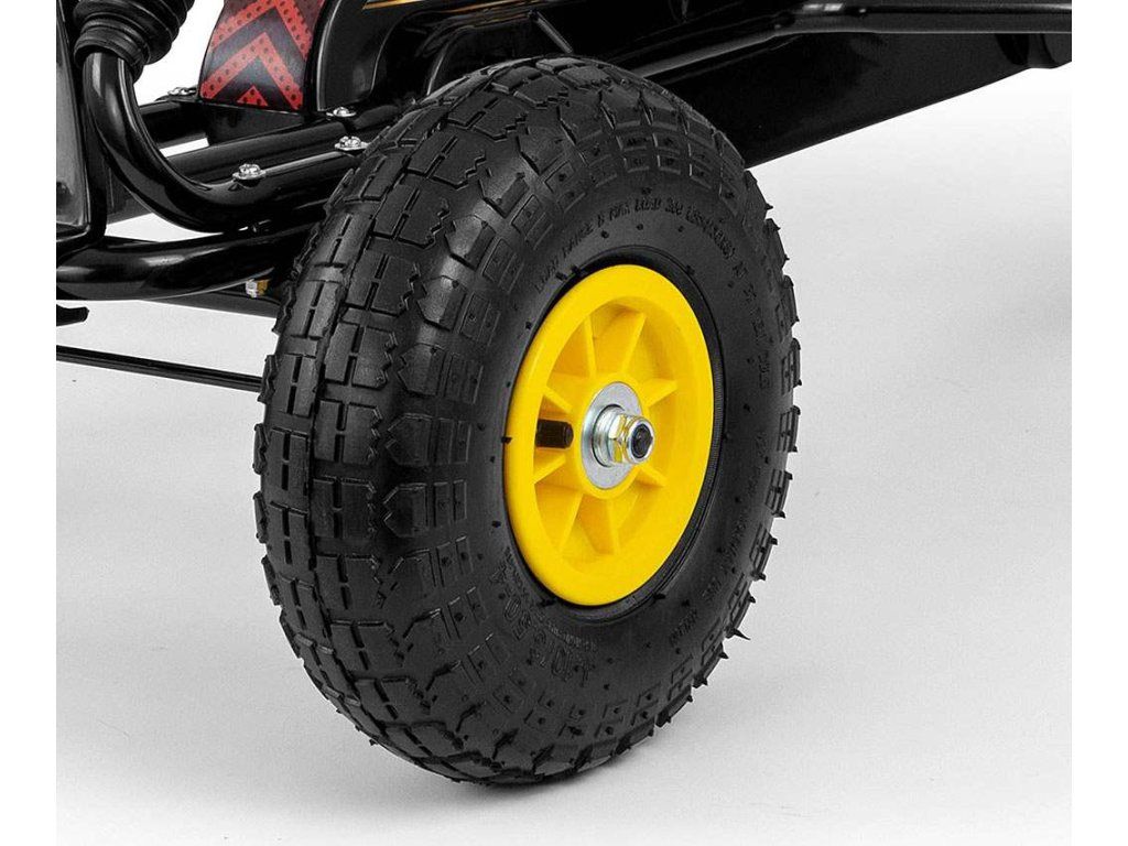 Veľká športová šliapacia motokára Thor bola navrhnutá pre najmladších vodičov a fanúšikov rýchlej jazdy. Konštrukcia z ľahkého kovu s plastovými krytmi v športovom štýle dodá každému malému vodičovi šmrnc. Pohodlie zaisťuje športovo tvarované sedadlo s nastaviteľnou vzdialenosťou od volantu. Športový volant uľahčuje riadenie vozidla a veľké nafukovacie pneumatiky zaistia komfort a pohodlie pri jazde na akomkoľvek povrchu. Motokára má zabudovaný reťazový pohon s možnosťou odpojenia pohonu - funkcia "voľnobežky" - a ručnú brzdu na zadnej náprave. Šlapadlo sa vyznačuje športovým dizajnom a vysokou kvalitou spracovania.