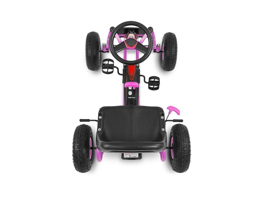 Veľká športová šliapacia motokára Thor bola navrhnutá pre najmladších vodičov a fanúšikov rýchlej jazdy. Konštrukcia z ľahkého kovu s plastovými krytmi v športovom štýle dodá každému malému vodičovi šmrnc. Pohodlie zaisťuje športovo tvarované sedadlo s nastaviteľnou vzdialenosťou od volantu. Športový volant uľahčuje riadenie vozidla a veľké nafukovacie pneumatiky zaistia komfort a pohodlie pri jazde na akomkoľvek povrchu. Motokára má zabudovaný reťazový pohon s možnosťou odpojenia pohonu - funkcia "voľnobežky" - a ručnú brzdu na zadnej náprave. Šlapadlo sa vyznačuje športovým dizajnom a vysokou kvalitou spracovania.