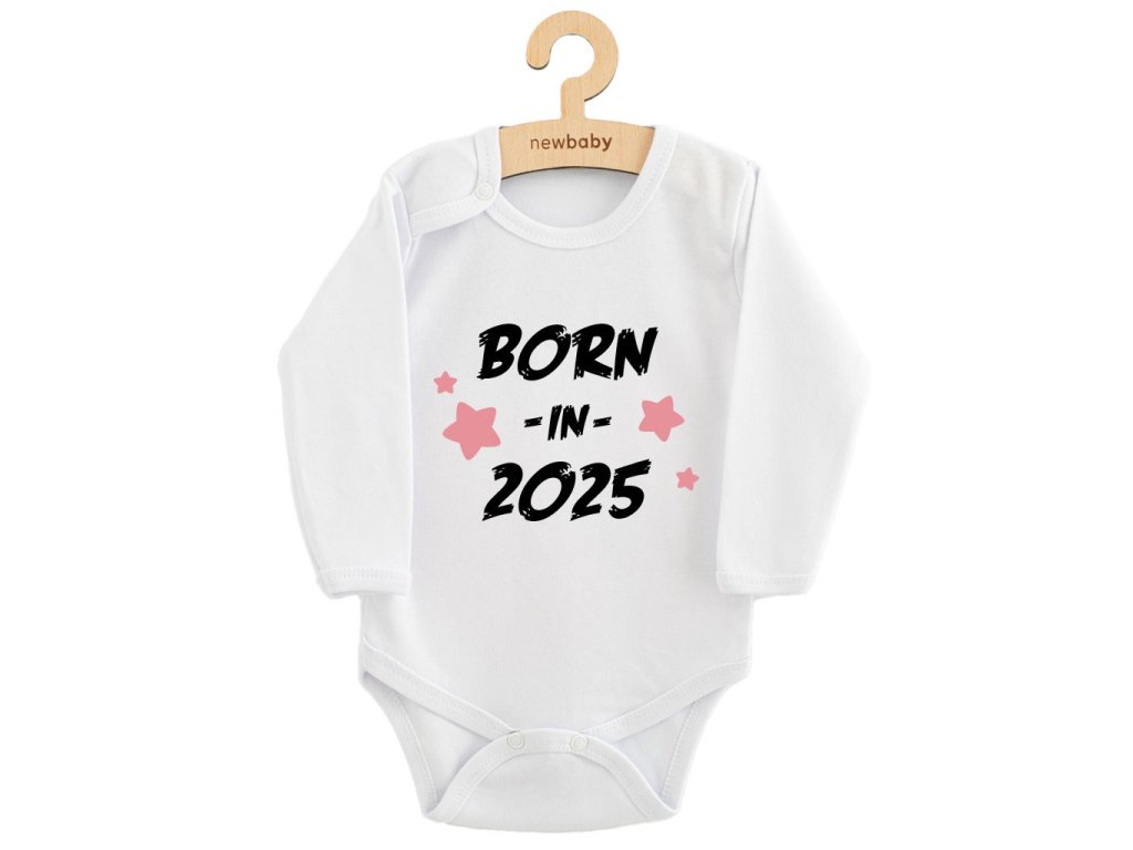 Detské body s potlačou New Baby BORN IN 2025 pink, veľkosť 56 (0-3m)