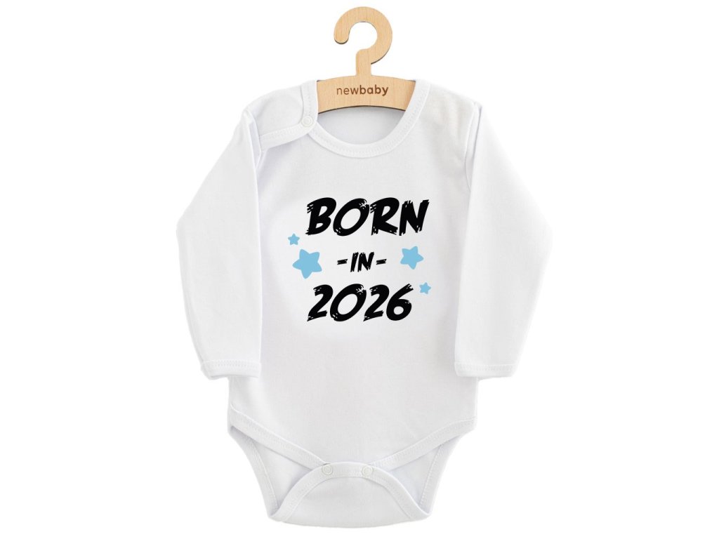 Detské body s potlačou New Baby BORN IN 2026 blue, veľkosť 56 (0-3m)