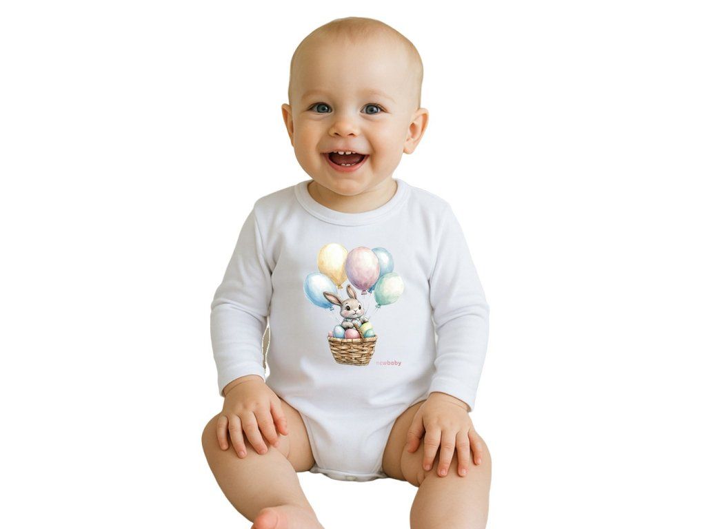 Detské body s potlačou New Baby Králiček s balónikmi, veľkosť 74 (6-9m)