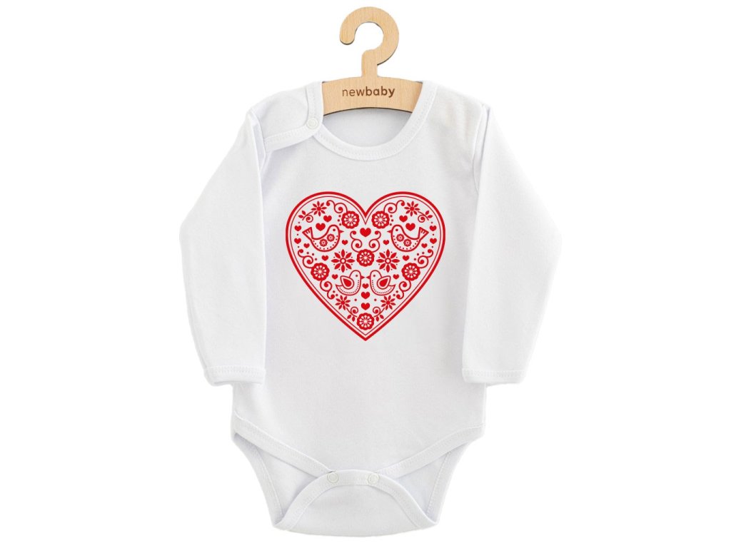 Detské body s potlačou New Baby Ľudový vzor červené srdiečko, veľkosť 86 (12-18m)