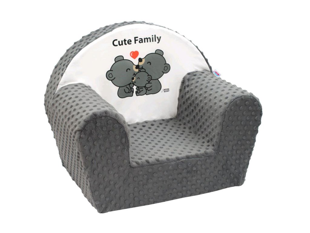 Detské kresielko z Minky New Baby Cute Family českej značky je skvelým a veľmi obľúbeným doplnkom do detskej izbičky. Toto kreslo pre najmenšie deti je vyrobené z mäkkej Minky látky a má snímateľný poťah, ktorý možno prať. Minky je hebká látka s výstupkami pre stimuláciu senzomotoriky detí. Poťah má veľmi príjemné farby a zdobí ho obrázok roztomilej medvedej rodinky, čím dieťa zaujme. Rozmery: vxš: cca 42x53 cm, výška operadla cca 29 cm, šírka sedadla cca 25 cm. Zloženie: poťah 100% polyester, vnútorný materiál: polyuretánová pena.Dodatočné parametre