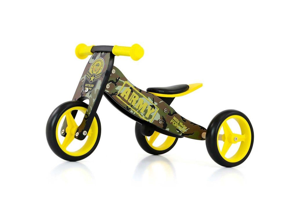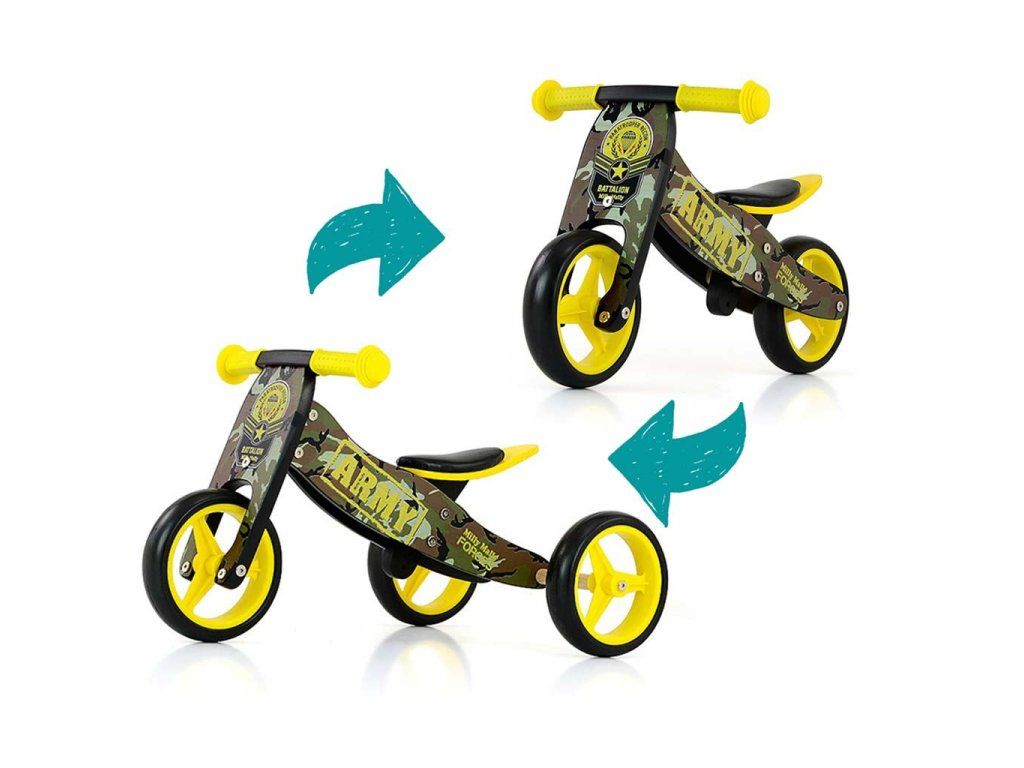 Detské multifunkčné odrážadlo bicykel 2v1 Milly Mally JAKE Army