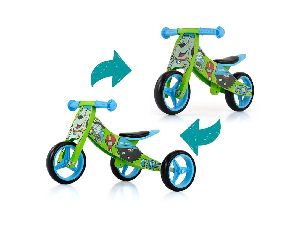 Detské multifunkčné drevené odrážadlo Milly Mally JAKE je ideálne pre deti, ktoré sa práve začínajú učí jazdiť na bicykli a pritom nie sú schopné udržať rovnováhu na dvoch kolesách. Výhodou odrážadlá JAKE je, že z trojkolky sa ľahko stane odrážadlo na dvoch kolesách.Charakteristika: