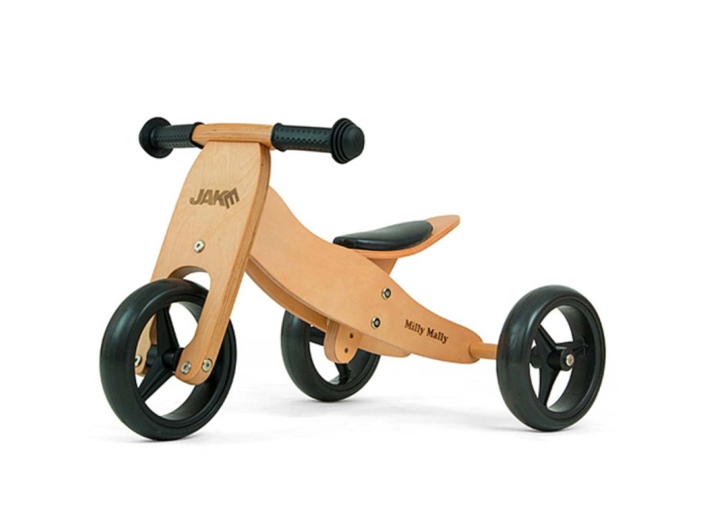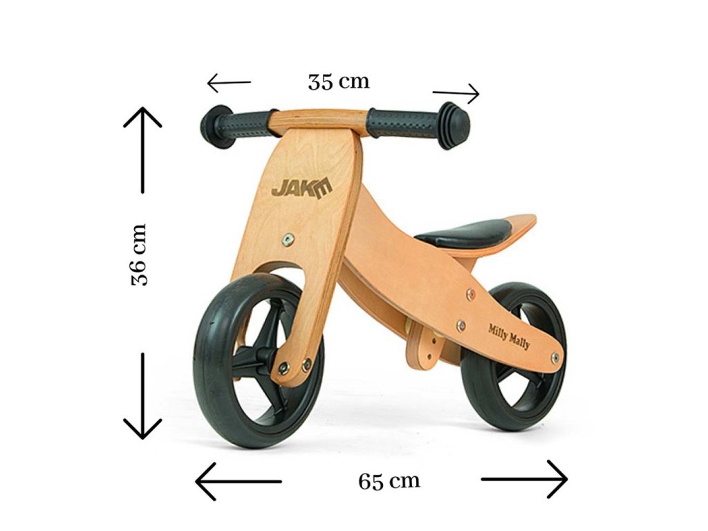Detské multifunkčné drevené odrážadlo Milly Mally JAKE je ideálne pre deti, ktoré sa práve začínajú učí jazdiť na bicykli a pritom nie sú schopné udržať rovnováhu na dvoch kolesách. Výhodou odrážadlá JAKE je, že z trojkolky sa ľahko stane odrážadlo na dvoch kolesách.Charakteristika: