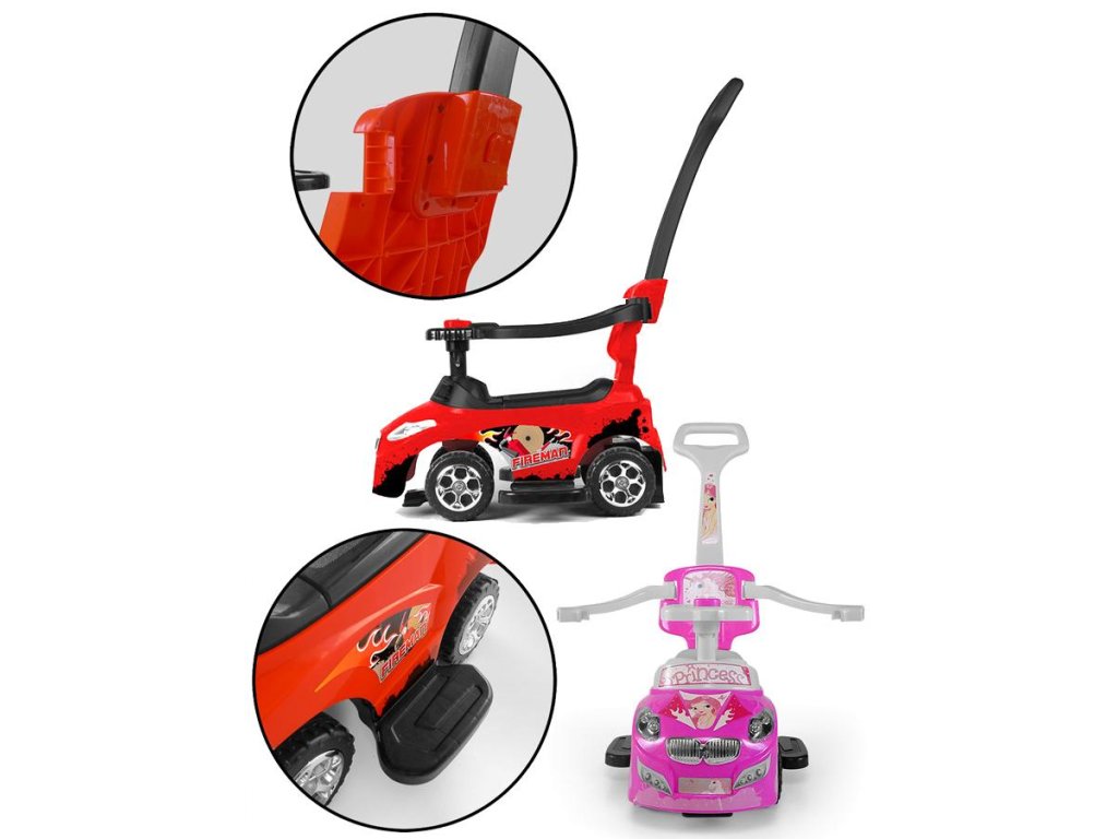 - rozmer: výška po rukoväť 85 cm, výška po sedadlo 23 cm, Jezdítko: dxš 62x38 cm, priemer kolies 14 cm